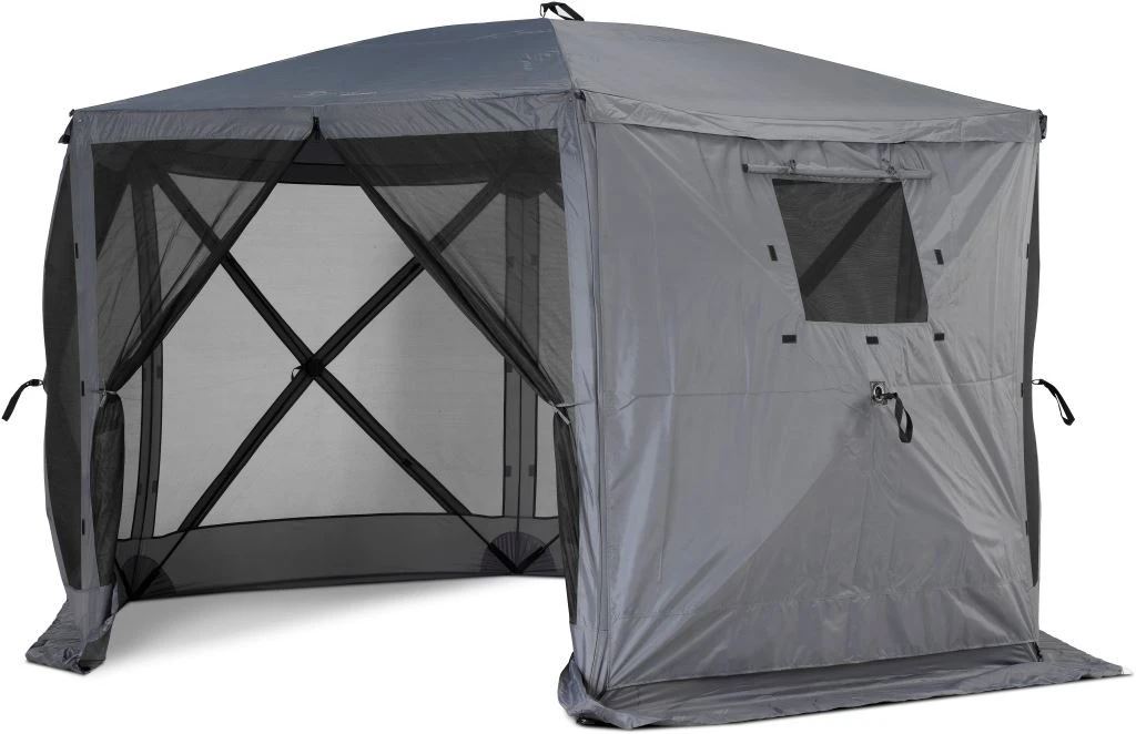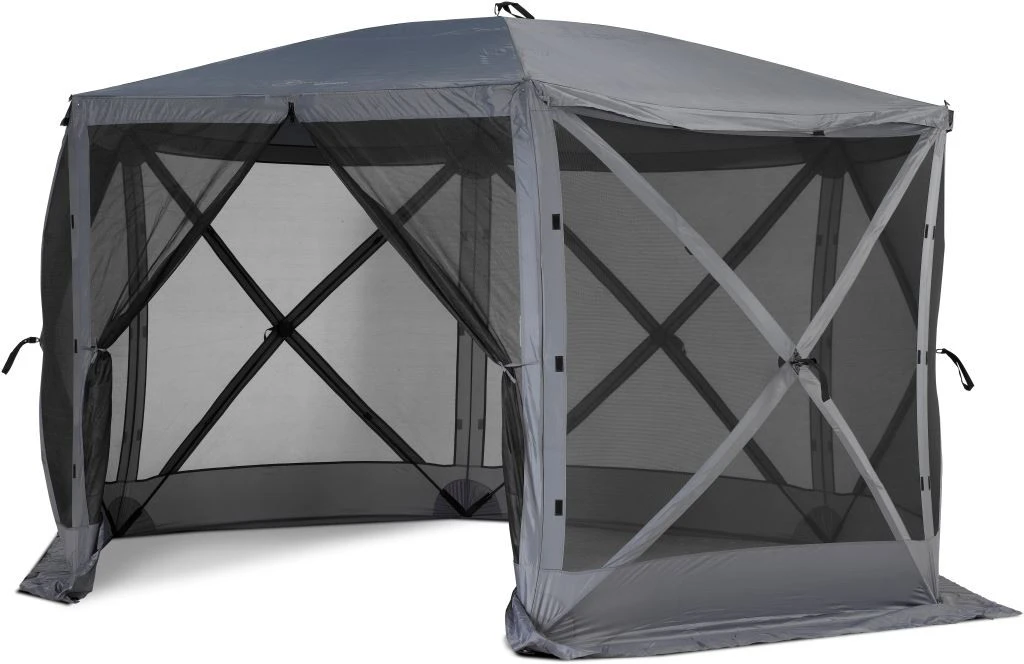 Die Bardani Quick Lodge 6 ist ein großes, schnell aufzubauendes Partyzelt mit umlaufenden Meshwänden. Die Quick Lodge 6 ist groß genug, um über einen Picknicktisch zu passen und bietet geräumigen Schutz ohne Wespen, Mücken und andere Insekten. Das Gewebe besteht aus 210D Polyester, mit versiegelten Nähten und einer Wassersäule von 1000 mm. Ideal für im Garten oder auf dem Campingplatz.