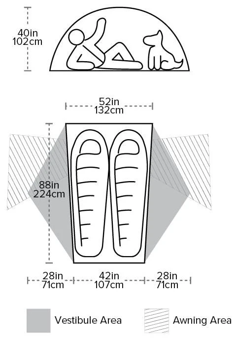 The high volume design provides ample living space in this freestanding structure. Traditional, media, and 3D bin pockets help to organize your gear without cramping your sleep space or capacity to sit up inside. Awning-style vestibules can be customized to expand living space, great for both drizzle and sun protection. Your ultimate UL home away from home.