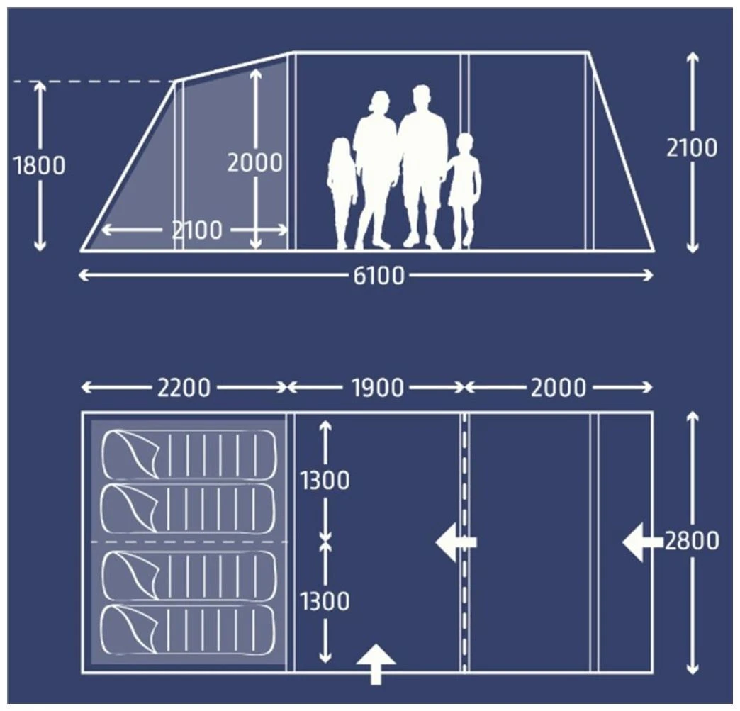 | Außenzelt | 100% Polyester weathershield 6000 mm |