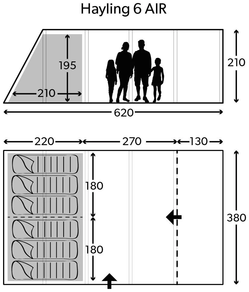 Strapazierfähiges Weathershield 68D Material und die neueste AIR Frame-Technologie sorgen dafür, dass die HAYLING-LUFT ein Favorit der Familie bleibt. Türen auf der linken Seite und Frontplatte verfügen über Mesh-Bildschirme, um den Luftstrom aufrechtzuerhalten, und das vordere Baldachin bietet wertvollen Wohnraum im Freien. Niedrige und hohe Belüftungspunkte und abgedunkelte Schlafzimmer sorgen dafür, dass Sie sich bei jedem Wetter wohlfühlen