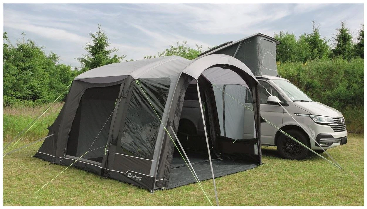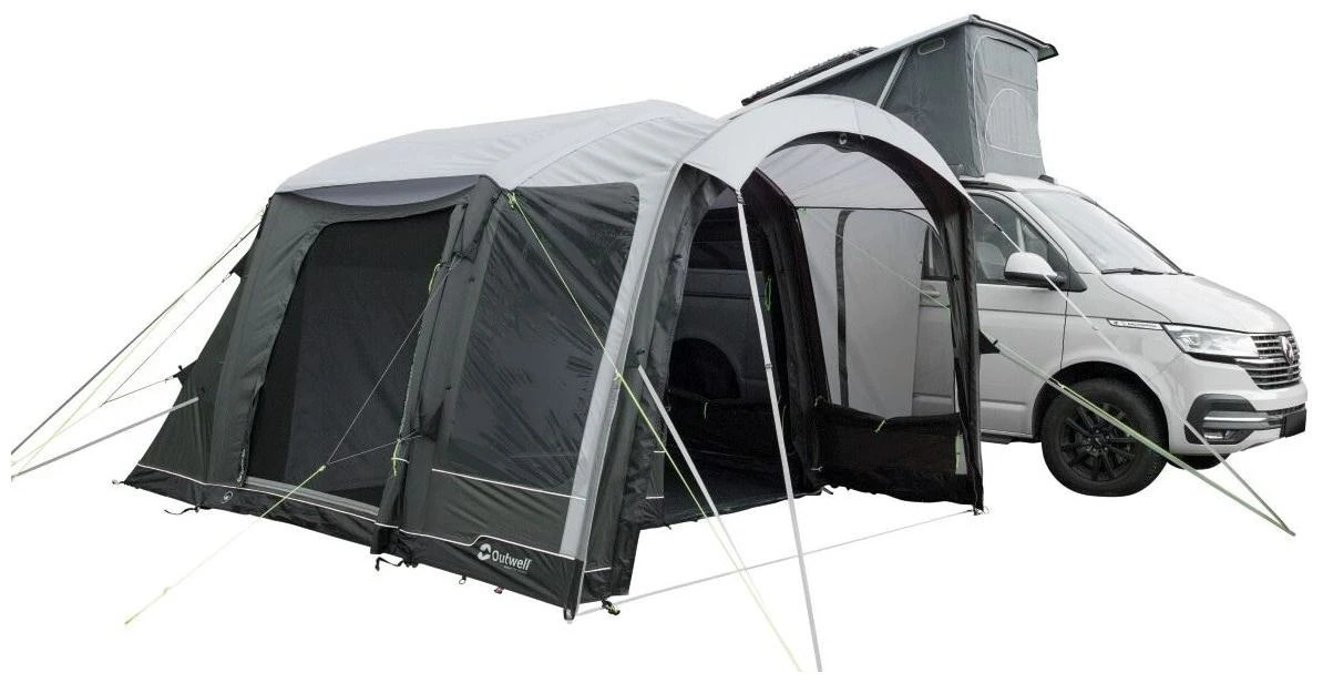 The versatile Outwell Jonesville 290SA Flex inflatable drive-away awning is attached in parallel to either side of most campervans via its removeable access zone. Its tunnel tent style is a great choice for both families and couples who enjoy the freedom and variety of touring life. Made with outstanding durable, fully waterproof, ripstop fabric, it adds the flexibility of a large living area with ample headroom and can sleep two in the optional inner ideal for teens or friends.