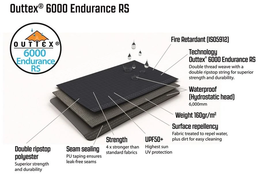 | Außenzelt | Outtex® 6000 endurance rs, 100% Polyester; 6000 mm |