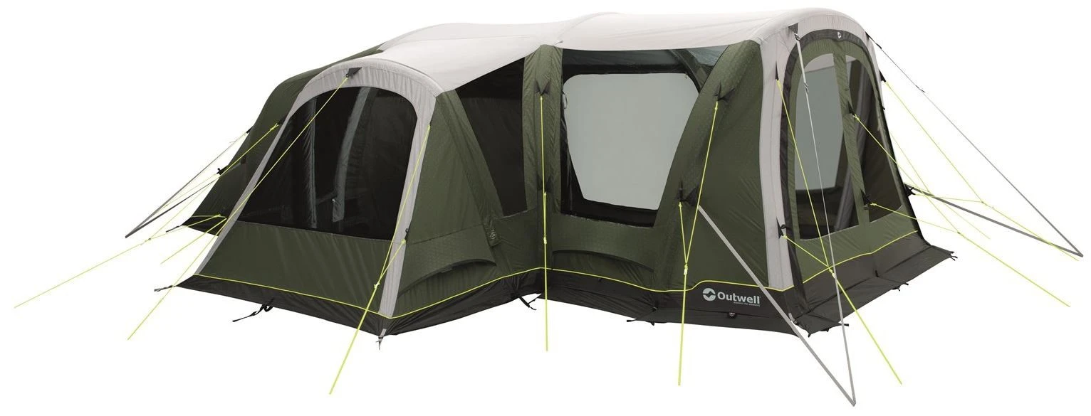 Das vielseitige Drei-Zonen-Zelt Oakdale 5PA beherbergt bis zu fünf Personen in zwei Premier-Schlafkabinen mit Panorama-Aussicht. Die Verbindungen zwischen den äußeren und inneren Zonen sind zudem mit dem Quick & Quiet Access versehen. Die steile Frontwand sorgt für einen großzügigen Innenraum und vereinfacht das Öffnen und Schließen. Dank der einzigartigen, vielseitig nutzbaren Outwell Wing Lounge, der vielen Fenster und der reichlich vorhandenen Belüftungsmöglichkeiten bietet das Zelt einen besonders luftigen Wohnraum.