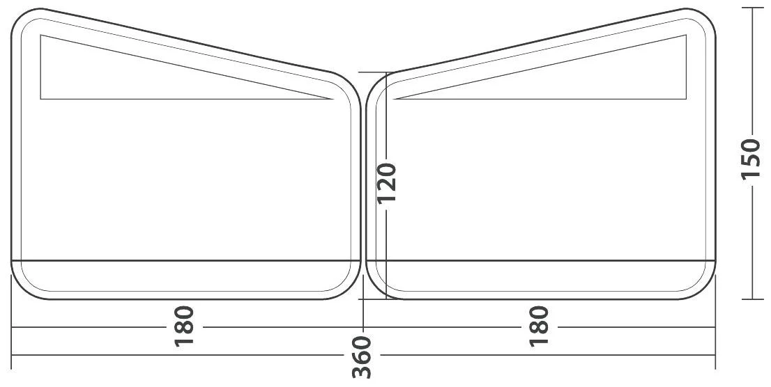 Modulair opblaasbaar windscherm met overhangende bovenkant voor bescherming op maat en privacy waarmee u een unieke buitenkamer creëert. Naar behoefte uitbreidbaar door meer 180-kits of de Windscreen Air Scalable150-opties toe te voegen.