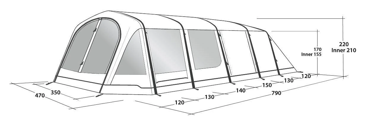 Das Wood Lake 7ATC mit Quick & Quiet Access bietet Platz für bis zu sieben Personen in drei 230 cm großen, abgedunkelten Master-Schlafkabinen vom Typ Ambassador, die mit Outwell Quick & Quiet Inner Doors ausgestattet sind. Vorgebogene Luftschläuche gewährleisten die Stabilität und schaffen reichlich Kopffreiheit. Die steilen Seitenwände optimieren zudem den nutzbaren Raum im Inneren, der mit einem langlebigen Zeltboden aus Polyethylen versehen ist. Das Outwell Easy Access Front Door System lässt sich vollständig öffnen. Zudem verfügt das Zelt im vorderen Bereich über einen herausnehmbaren, wannenförmigen Zeltboden sowie über eine Tür mit Moskitonetz am Eingang zum zentralen Bereich.