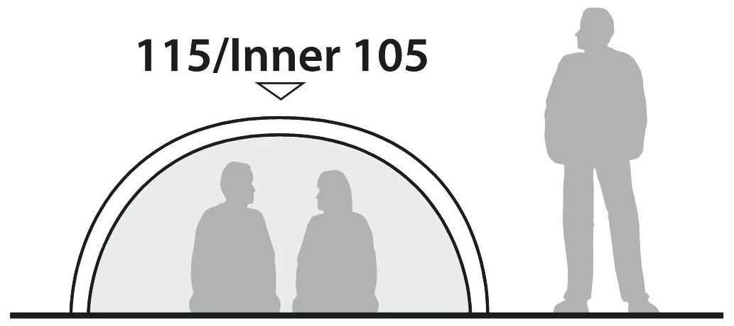 Inner features vertical front and rear walls, plus large doors, to maximise space and allow entry and sitting without stressing fabric.