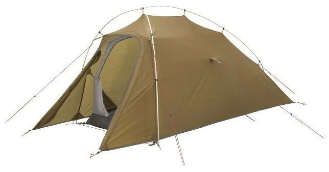 Das Elk River 1 ist ein Einpersonen-Tunnelzelt mit einem leicht nach hinten abfallenden Dach. Für eine aerodynamische Form sorgt ein einzelner externer Clip-on-Gestängebogen mit Firststange. Der Eingangsbereich ist hoch genug, damit sich der Bewohner bequem hinsetzen kann. Der Einstieg ins Zelt erfolgt durch eine Vordertür, die zu einer Seite aufgeklappt wird. Dank des doppelten Reißverschlusses kann die Tür oben einen Spalt geöffnet werden, um mehr Luft ins Zelt zu lassen. Der Vorraum bietet ausreichend Platz für einen Rucksack und Wanderschuhe.