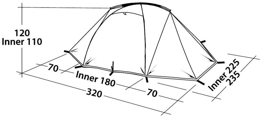 The combination of dome style and short transverse ridge pole provides three people plenty of flexible living, cooking and storage space. Excellent internal height and width enables all three occupants to sit side by side, no need to take turns! The two large doors allow easy access for all and the large twin porch areas offer ample room for gear storage and cooking needs.
