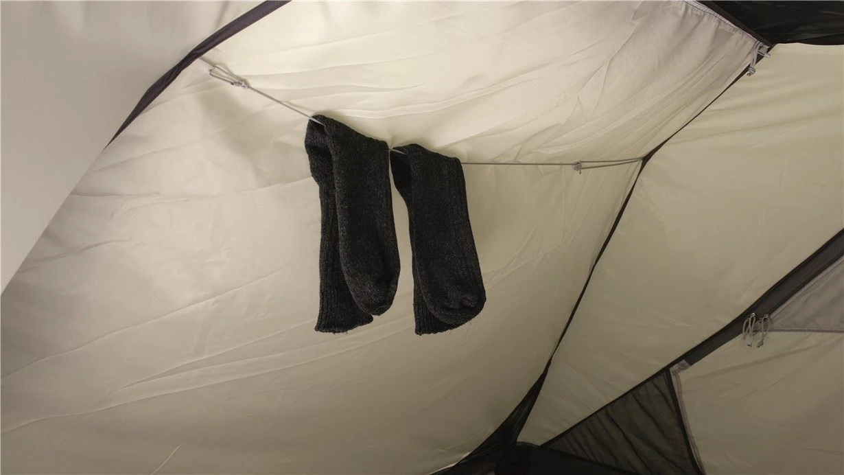 Das Kuppelzelt Lodge Pro 3 mit kurzer, querlaufender Firststange bietet dank der beiden Vorräume ein hohes Maß an Flexibilität. Die Höhe und Breite im Zelt ist ideal für drei Camper. Zudem sorgt das durchdachte, rechteckige Innenzelt mit vertikalen Türen für eine besonders effiziente Ausnutzung des Platzes. Die Außentüren lassen sich flexibel öffnen und bieten einen mühelosen, windgeschützten Zugang zum Zelt. Zur Unterstützung der niedrig angeordneten und der von innen anpassbaren oberen Lüftungsöffnungen können beide Türen geöffnet werden, sodass ein Durchzug entsteht. Die Stangenkanäle an den kurzen Enden erleichtern den Überblick über das Leichtmetall-Gestänge und beschleunigen das Aufstellen.