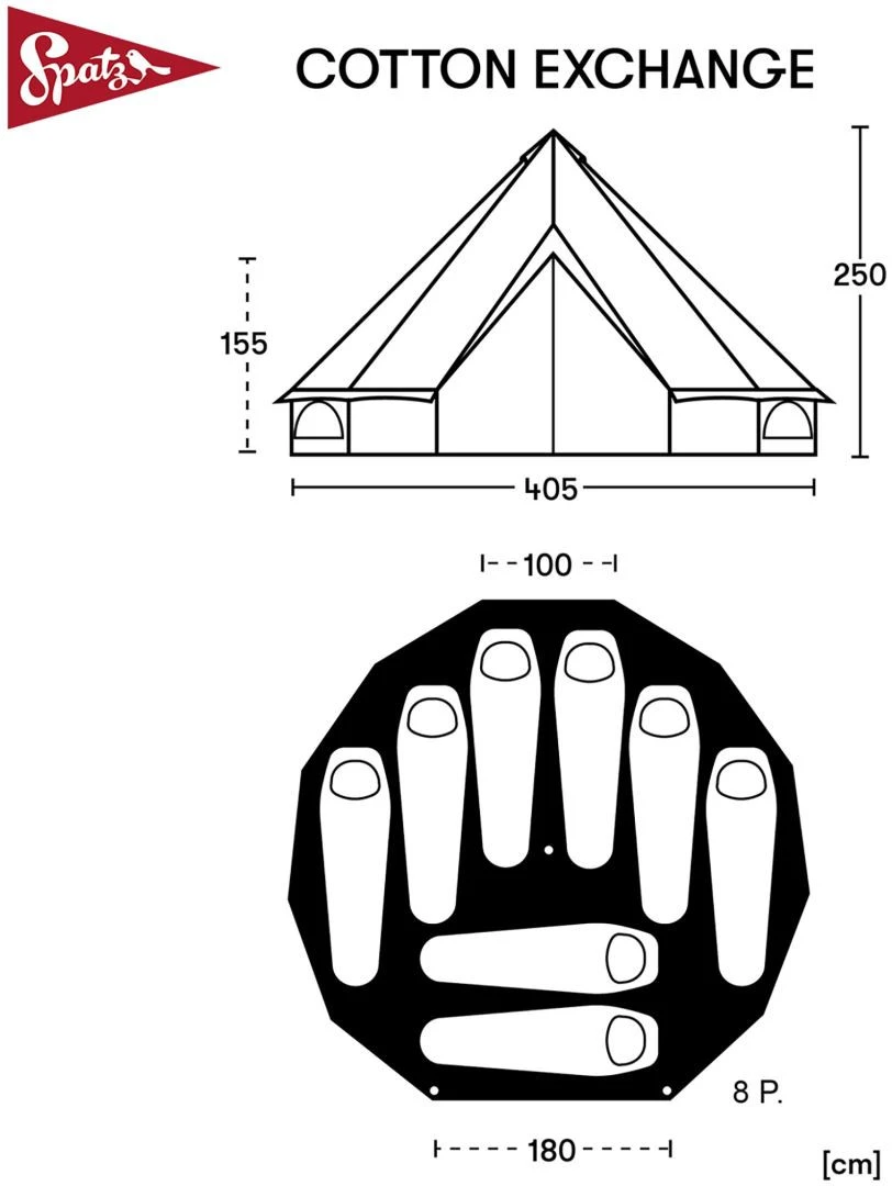 De Cotton Exchange van Spatz biedt veel ruimte en comfort. Door de enkele tentstok in het midden van de tent is hij zeer snel en eenvoudig op te zetten en deze Tipi-tent heeft een praktische, grote ingang. Perfect voor gezins- en groepsvakanties. Deze Pyramidetent wordt in Pakistan geproduceerd van hoogwaardig 100% katoen.
